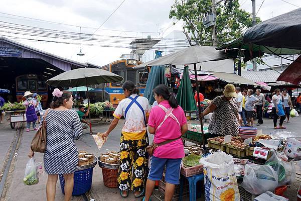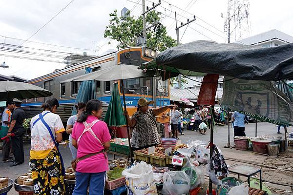 時間差不多後就回去卡位拍火車穿過攤販的景象
