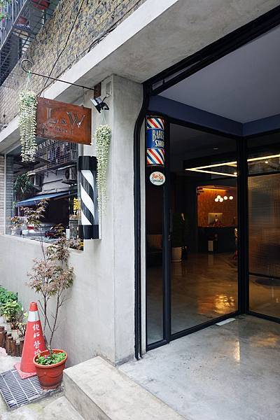 招牌旁邊的小盆栽在巷弄間增添不少綠意